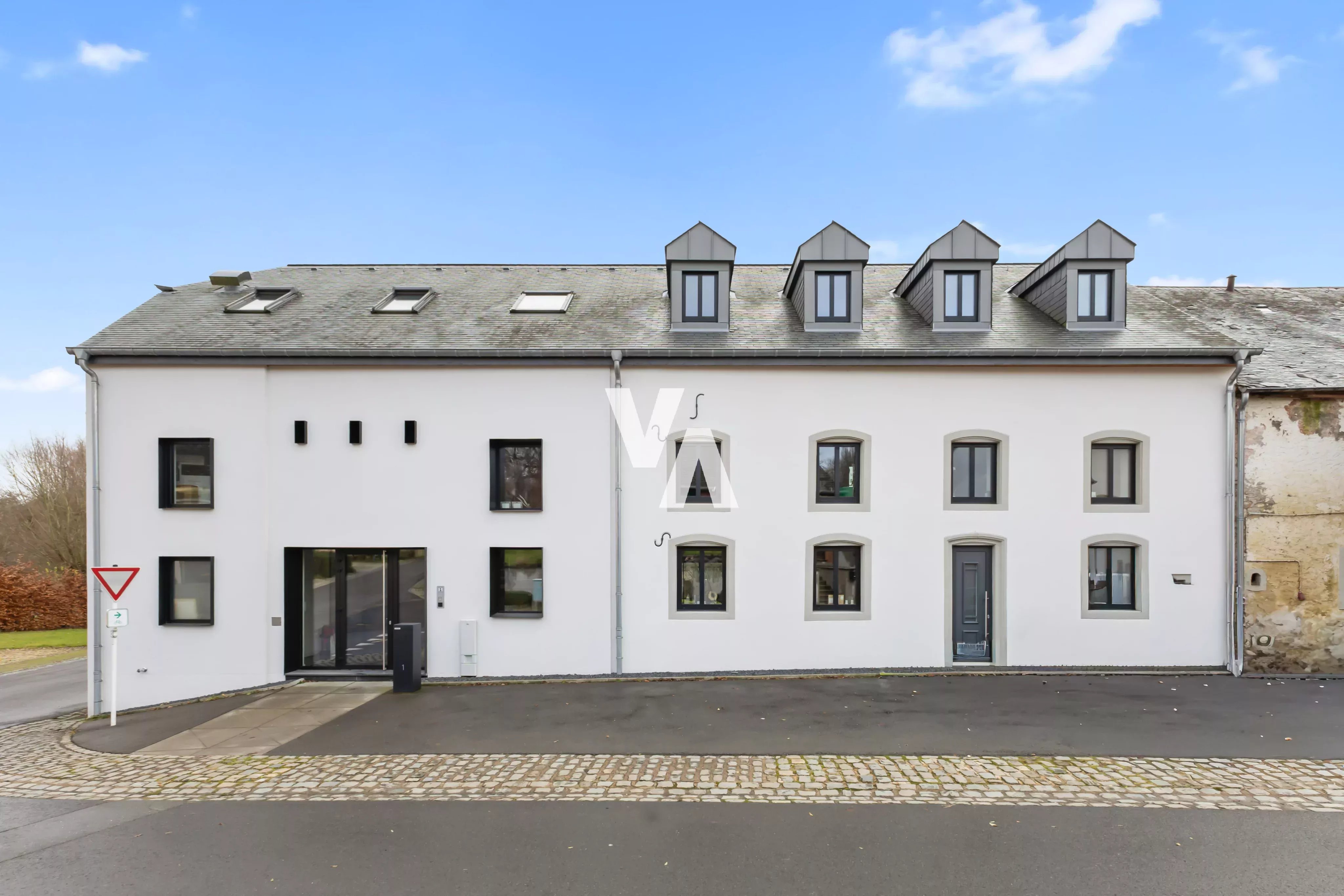 The complex is complemented by private outdoor spaces, including an 826 m² garden and a 100 m² terrace, as well as an outdoor parking lot with 30 parking spaces.